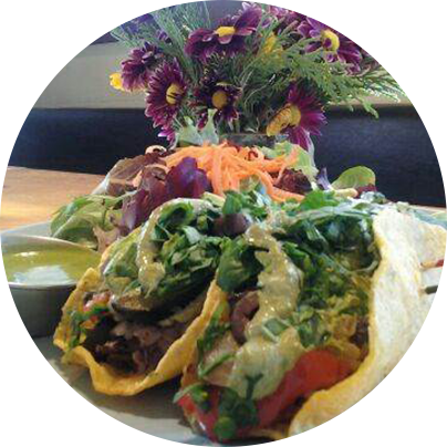 Our healthy, all-vegetarian meals include many organic ingredients and vegan options.